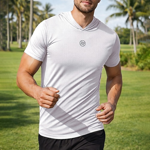 Per uomo T-shirt da corsa Maglia a compressione Maglia atletica Sport in alto Con cappuccio Manica Corta Maglietta Estate Tinta unita Asciugatura Rapida Traspirante Allenamento in Palestra Camminata