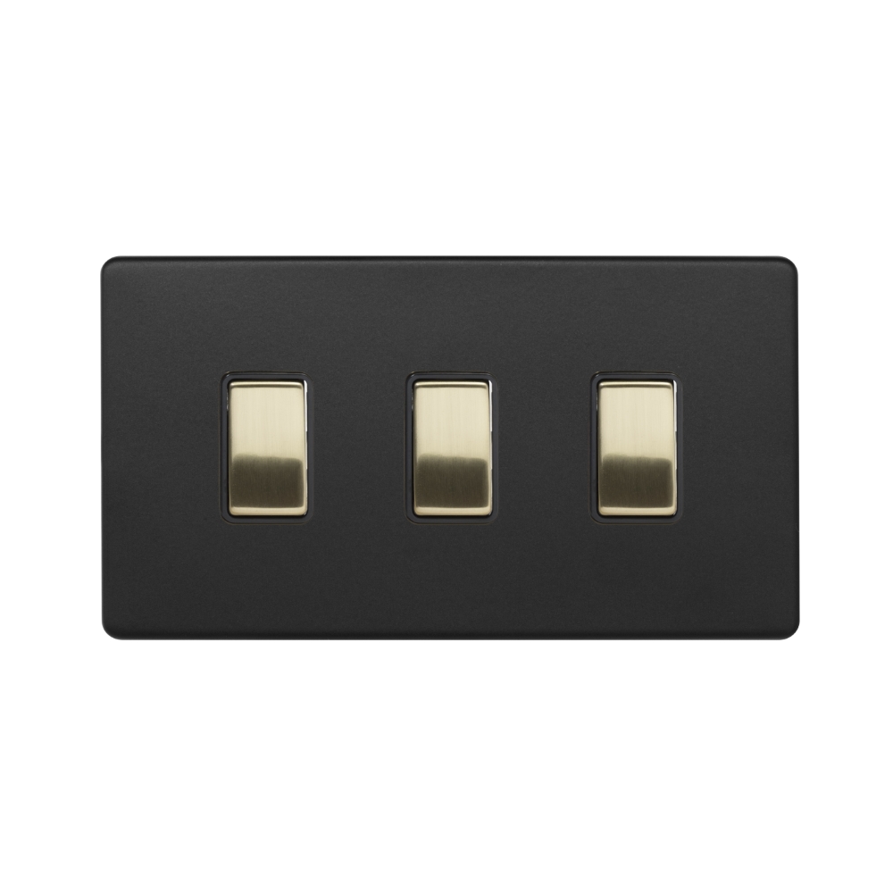 Soho Lighting Matt Black & Brushed Brass 3 Gang Switch Double Plate 2 Way Screwless