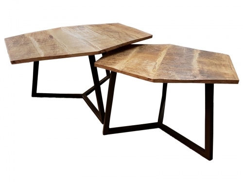 Amagohome Couchtisch Set 2 Stück Wohnzimmer Beistelltisch Satztisch Gestell Metall Tischplatte vollmassiv : schwarz matt - tabacco
