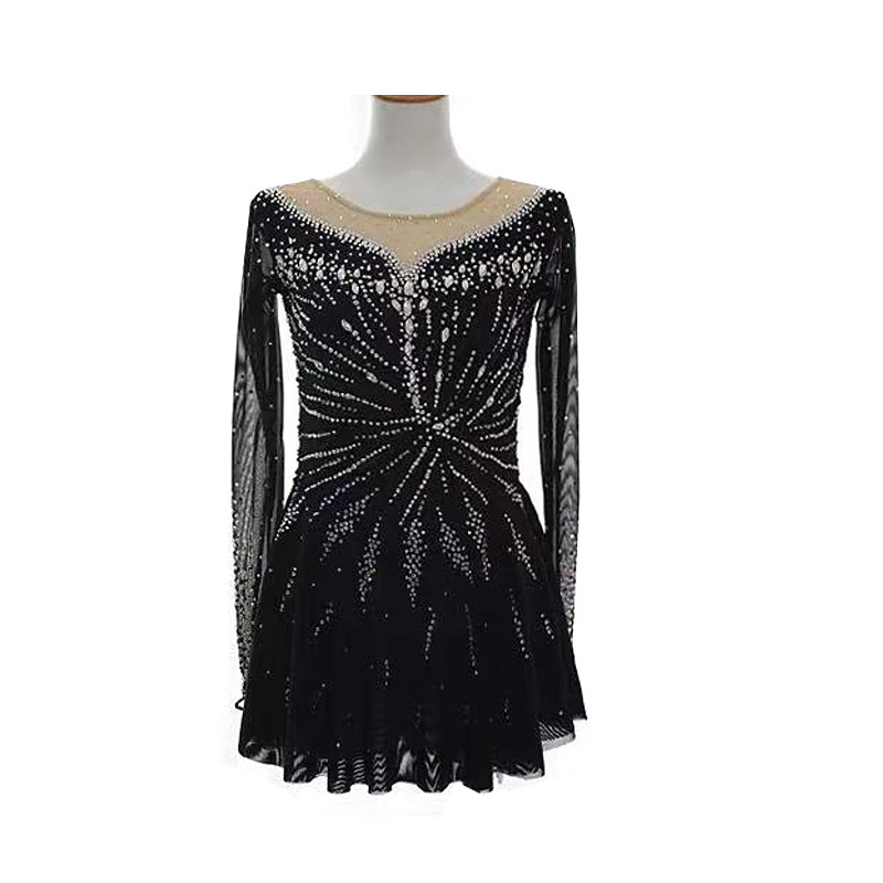 Eiskunstlaufkleid Damen Mädchen Eislaufen Kleid Schwarz Patchwork Daumenloch Netzstoff Spandex Dehnbar Training Übung Professionell Eiskunstlaufkleidung Thermowarm Kristall / Strass Langarm Eislaufen
