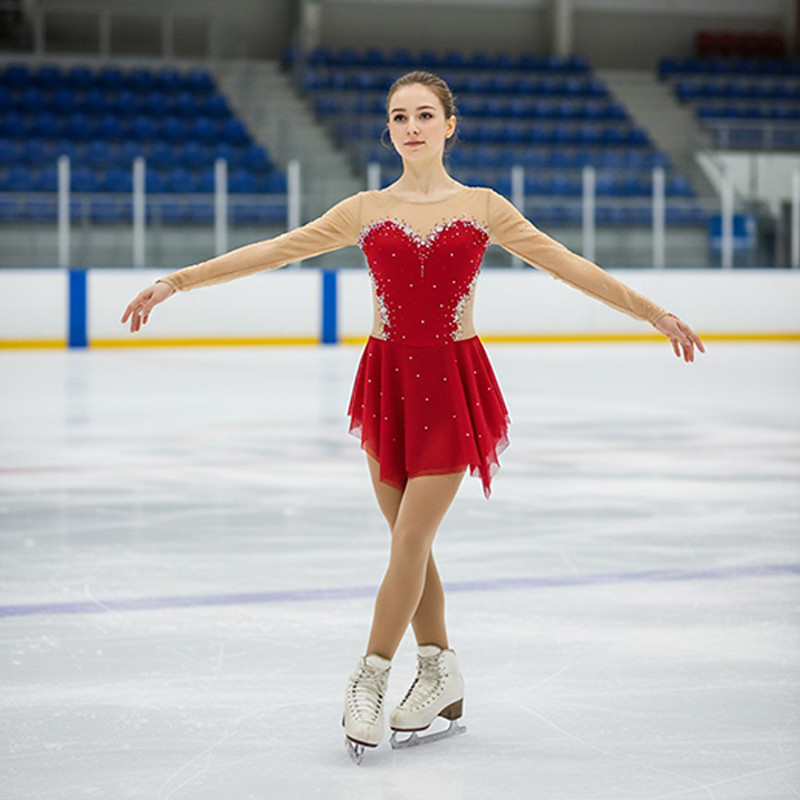 Figure Skating Dress Women's Girls' Ice Skating Dress Red Patchwork Open Back Mesh Spandex Stretchy Training Practice Professional Skating Wear Thermal Warm Crystal / Rhinestone Long Sleeve Ice