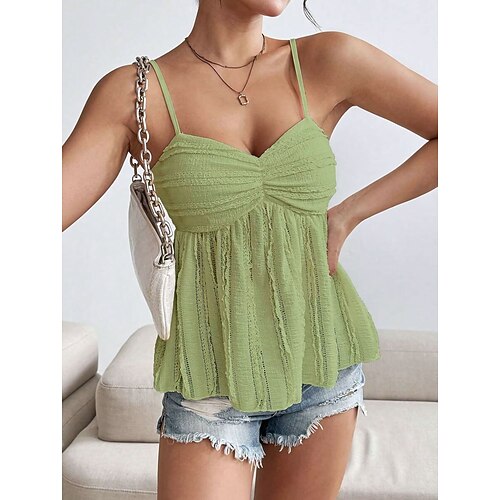 Per donna Canotta a canotta Tinta unica Quotidiano Elegante Casual Senza Maniche Spallina Top Regolari Quotidiano Uscire Abbigliamento da vacanza Arricciato Bianco Rosa Fucsia Verde Estate Primavera