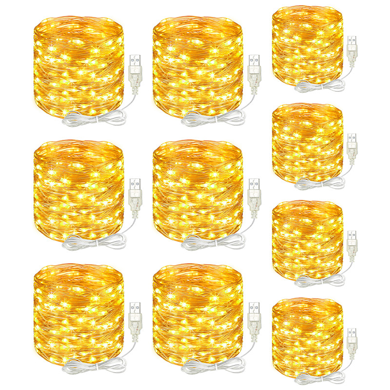 10 Pcs 5M/16.4FT 50 LED Beams Fairy String Lights Halloween Christmas Valentine's Day New Year Wedding Party Festival Indoor and Outdoor Decoration Copper Wire Lights USB Power Supply IP44 Waterproof
