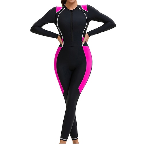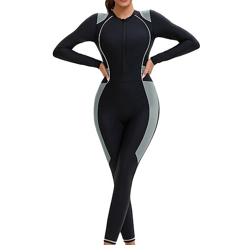 Per donna Top sottomuta Costumi da bagno interi Muta da sub Patchwork UPF50 Asciugatura Rapida Alta elasticità Manica Lunga Costume da Bagno Cerniera Frontale Surf Immersione Snorkeling Estate