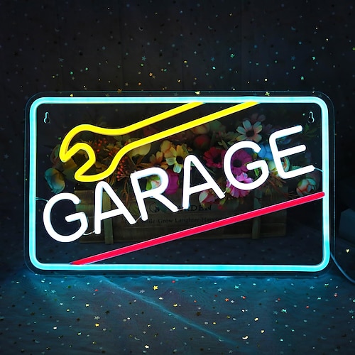 1 pz strumento di riparazione garage pannello posteriore acrilico a forma di led luce da parete al neon luce d'atmosfera luce decorativa a forma di chiave alimentatore usb dimmerabile regolabile