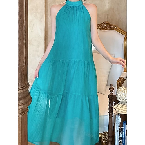 Per donna Abito maxi Abito a trapezio Abito Estivo Vestito all'americana Casual Quotidiano Vestibilità comoda Semplice Senza Maniche Collo Alto Blu Rosa Estate Primavera