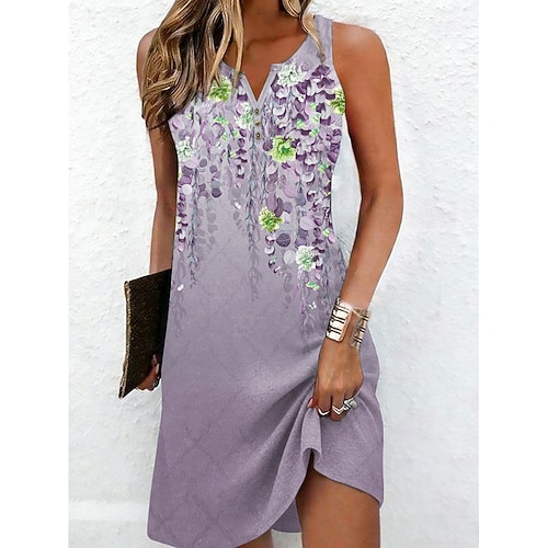 Per donna Mini Abito Vestito Estivo Abito a Tubino Abito Estivo Abito a spalle scoperte Vacanza Casual Quotidiano Ferie Uscire Vestibilità regolare Floreale Grafico Senza Maniche Scollo a V Blu Viola