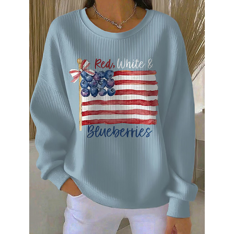 Women's Pullover Graphic Letter Warm Classic Casual Long Sleeve Crew Neck Regular Tops Casual Home Street Print Blue Light Blue Black White Red Spring Fall Winter
