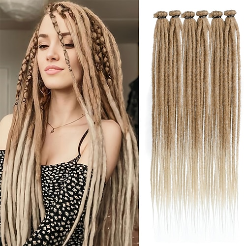 Estensioni per dreadlock da 24 pollici 20 fili di dreadlocks hippie a estremità singola Larghezza 0,6 cm estensioni loc capelli sintetici all'uncinetto stile reggae per donne e uomini