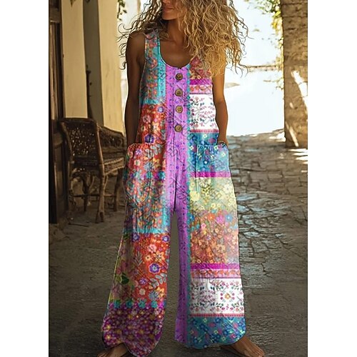 Per donna Tuta Attivo Floreale Senza Maniche Gamba larga Girocollo Patchwork Quotidiano Vacanza Vestibilità comoda Blu Rosa Viola Estate