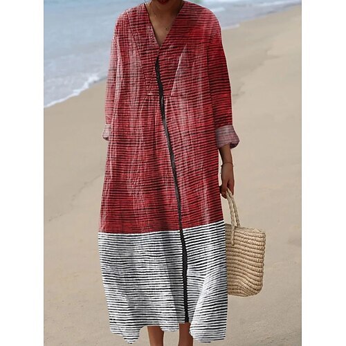 Per donna Abito maxi Vestito Estivo Abito a Tubino Vacanza Casual Spiaggia Uscire Vestibilità comoda Grafico Geometrico Astratto Manica Lunga Scollo a V Rosso violaceo Rosso arancione Fucsia Estate