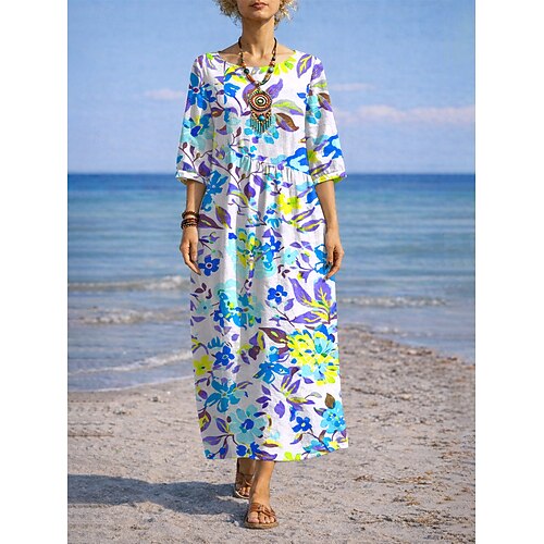 Per donna Abito maxi Abito a Tubino Vacanza Casual Spiaggia Spiaggia Uscire Vestibilità comoda Floreale Grafico Manica 3/4 Girocollo Blu Rosso Viola Verde Estate Primavera
