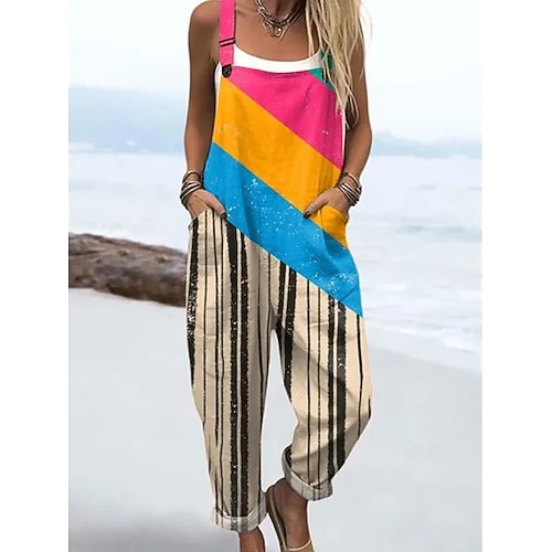 Per donna Salopette Attivo Floreale Senza Maniche Senza maniche Dritto Collo quadrato Tasca con tasca Vacanza Quotidiano Vestibilità comoda Arancione Verde Beige Estate