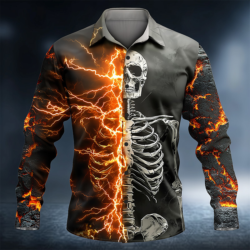 Men's Skull Lightning Skeleton Shirt Button Up Shirt Long Sleeve Dark Punk Gothic Style Outdoor Holiday Summer Spring Turndown 3D Print Collared Shirts Dark Gray