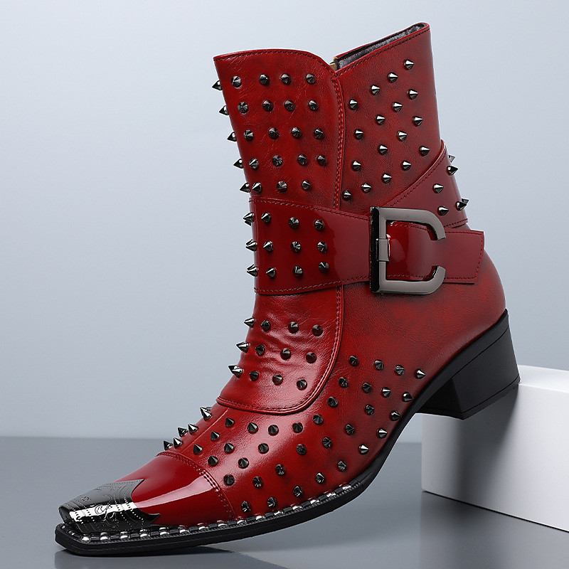Men's Bold Red Studded Cowboy Boots – Premium Faux Leather, Edgy Design, Perfect for Rocking Festival Outfits and Standout Looks