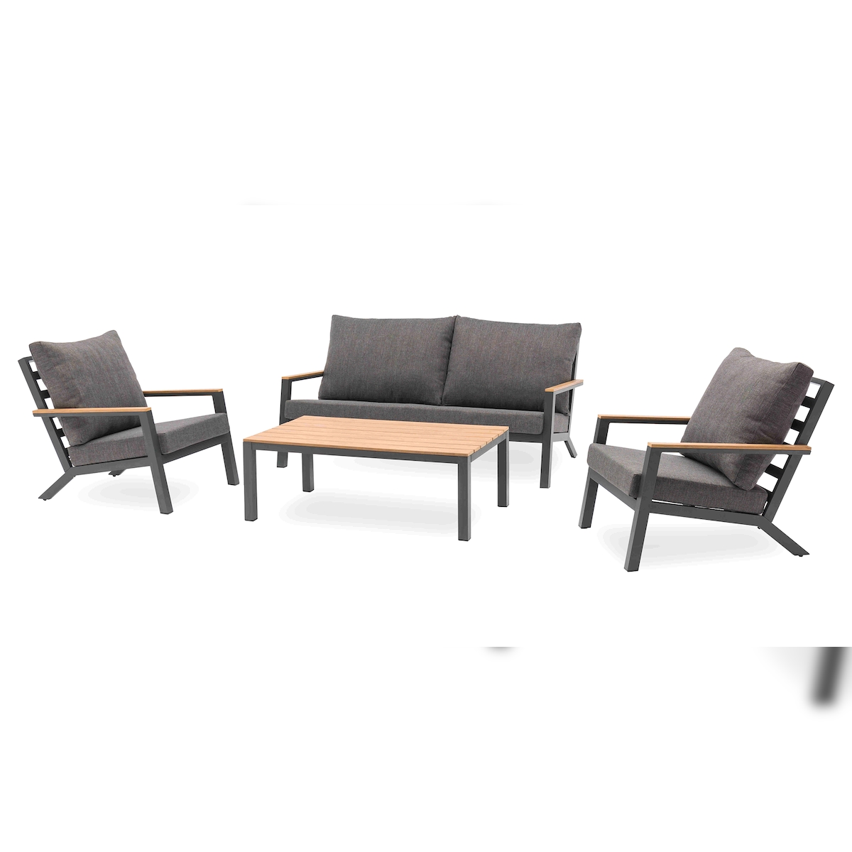 DCB GARDEN Gartenmöbel 5 pl aus anthrazitfarbenem Alu und Verbundplatte in Holzoptik - KOMMOS