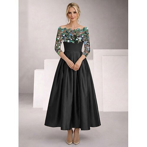 Linea ad A Lunghezza alla caviglia Vestito da Festa Abito da Cocktail Abito da invitata a nozze Abito da cerimonia per signora Manica 3/4 Collo gioiello Elegante Ospite di nozze Chiffon Pizzo con