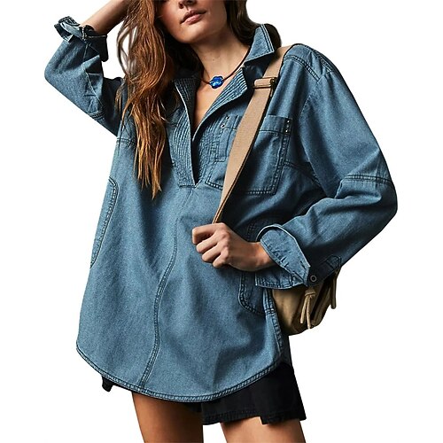 Per donna Camicia Top Eleganti Tinta unica Semplice Elegante Vintage Signore Manica Lunga Colletto a Camicia Top Regolari Lavoro Quotidiano Ferie Patchwork Tasca Blu Reale Blu Azzurro cielo Viola