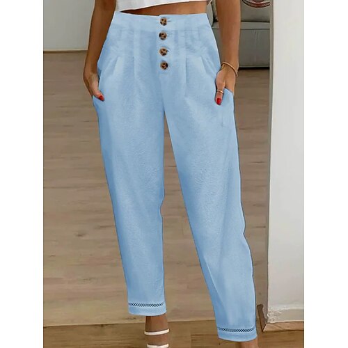 Per donna Pantaloni in cotone e lino Pantaloni Eleganti Streetwear Casual Lunghezza intera Naturale Semplice Tasca Elastico in vita Comodo Confortevole Casual Quotidiano Weekend Aalbicocca Blu cielo