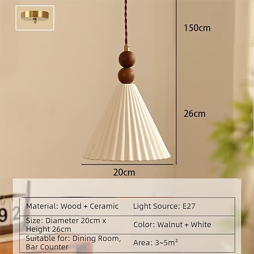 lampada a sospensione affusolata in tessuto plissettato, lampada a sospensione in legno e ceramica, lampada a sospensione per sala da pranzo, ristorante, bar, camera da letto 85-265 V