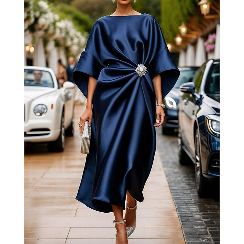 Women's Midi Dress Satin Dress Semi Formal Dress Elegant Fashion Modern Daily Date Weekend Regular Fit Plain Half Sleeve Crew Neck Pink Wine Navy Blue Green Spring Fall