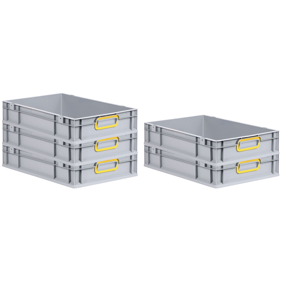 PROREGAL 5x Eurobox NextGen Color | HxBxT 12x40x60cm | 23 Liter | Griffe gelb geschlossen | Glatter Boden | Eurobehälter