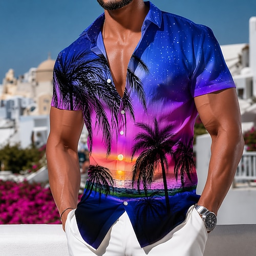 Per uomo Albero di Cocco Stampe Grafiche Tramonto Polo Polo Hawaiane Maglia da golf Maniche Corte Camicia Colletto cubano All'aperto Streetwear Giallo Rosso Blu Viola Verde Stampato Abbigliamento