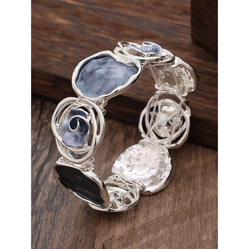Women's Silver-Tone Bracelet – Artistic Design with Blue Resin Shell Accents for an Elegant Coastal Look