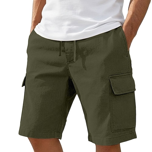 Per uomo Pantaloncini cargo Shorts Shorts di Lino Pantaloncini Estivi Shorts da Spiaggia Coulisse Elastico in vita Multi-tasche Semplice Lunghezza al ginocchio Stile Classico Casual Nero Bianco