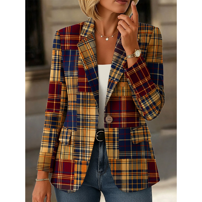 Women's Blazer Warm Comfortable Pocket Buttons Print Daily Casual Plaid Formal Office Casual Single Breasted Regular Notch Lapel Regular Fit Long Sleeve Outerwear Yellow Gray Spring Fall