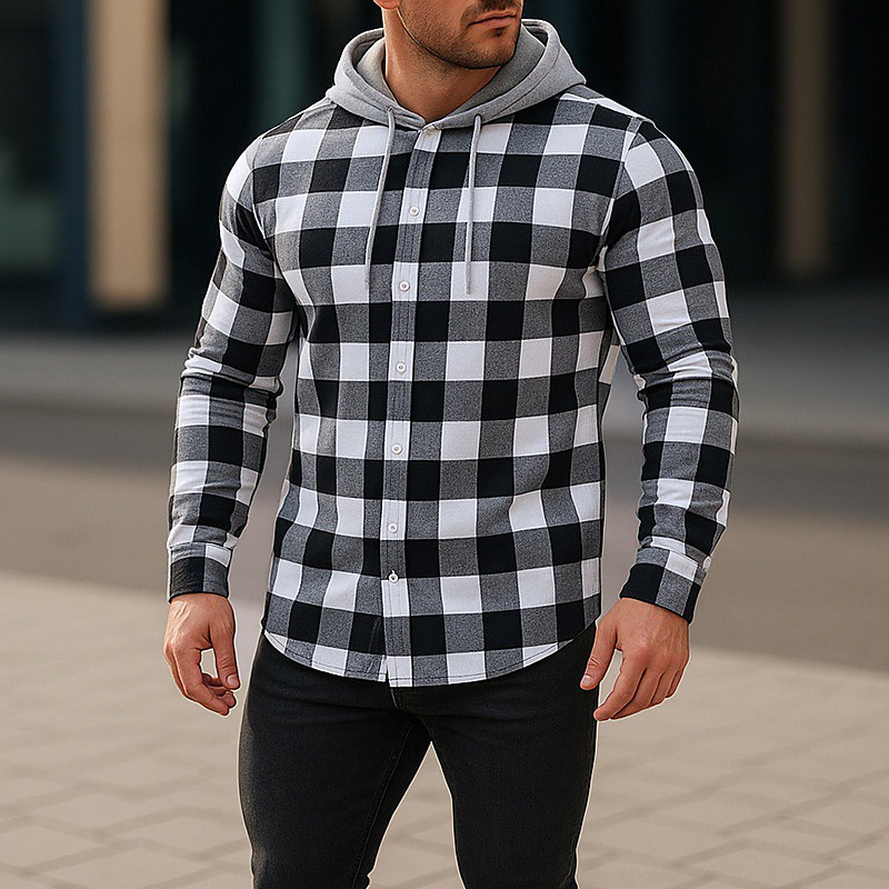 Men's Shirt Casual Shirt Beach Shirt Blue Black Yellow Red Green Long Sleeve Plaid Hooded Casual Daily Drawstring Clothing Apparel Fashion Casual Comfortable