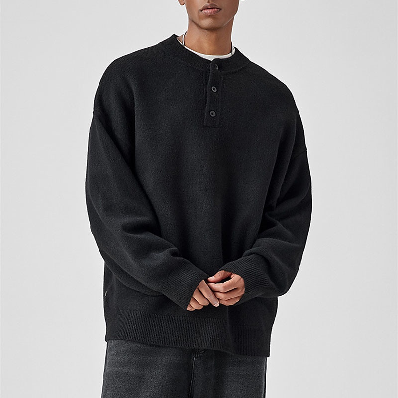 Men's Pullover Sweater Jumper Knit Sweater Pullover Polo Sweater Ribbed Knit Regular Knitted Plain Henley Fashion Basic Vacation Daily Wear Clothing Apparel Fall Winter Black Light Grey M L XL