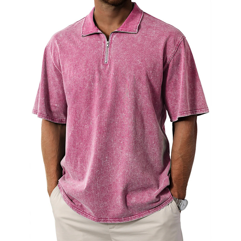 Men's Zip Polo Textured Casual Holiday Lapel Quarter Zip Short Sleeve Vintage Fashion Plain Quarter Zip Summer Regular Fit Light Blue Black White Gray Zip Polo