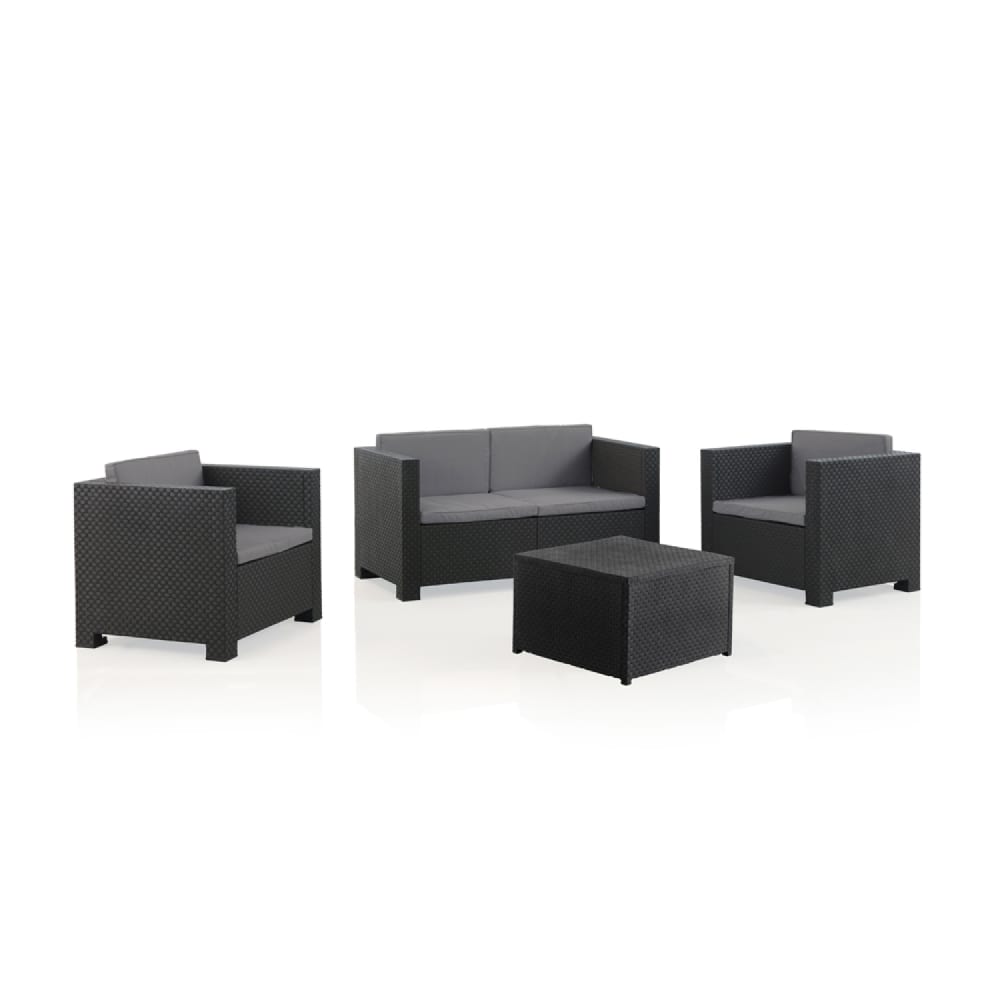 Mobili da giardino a 4 posti in resina intrecciata con tavolo e scatol