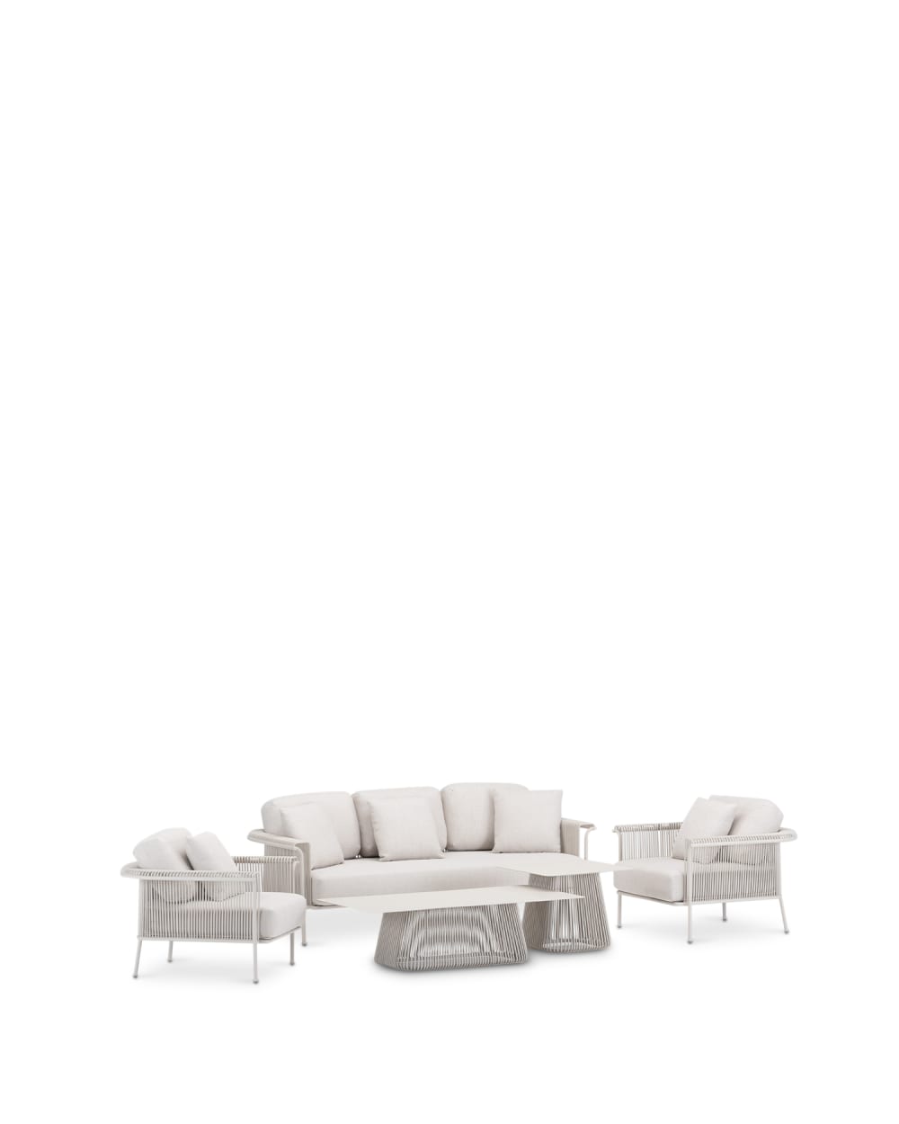 Set da giardino 5 posti e 2 tavole in alluminio beige