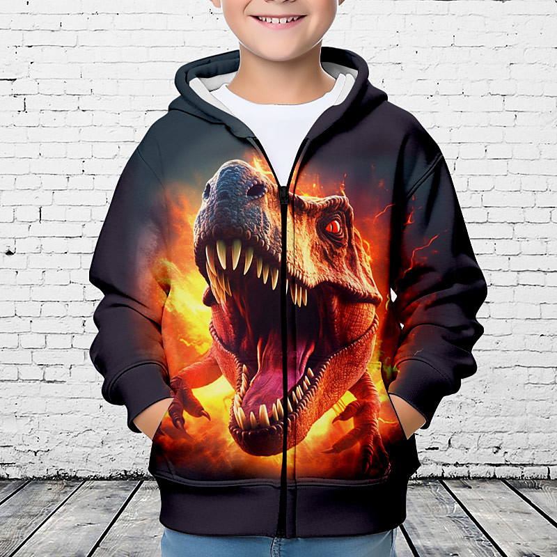 Boys 3D Dinosaur Hoodie Coat Outerwear Long Sleeve 3D Print Fall Winter Fashion Streetwear Cool Kids 3-12 Years Outdoor Casual Daily Regular Fit