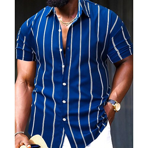 Per uomo Camicia Camicia Estiva Camicia casual Camicia da Spiaggia Camicia con Bottoni Nero Verde chiaro Blu reale Verde Kaki Manica Corta A righe Bavero Vacanza Camicia hawaiana Abbigliamento