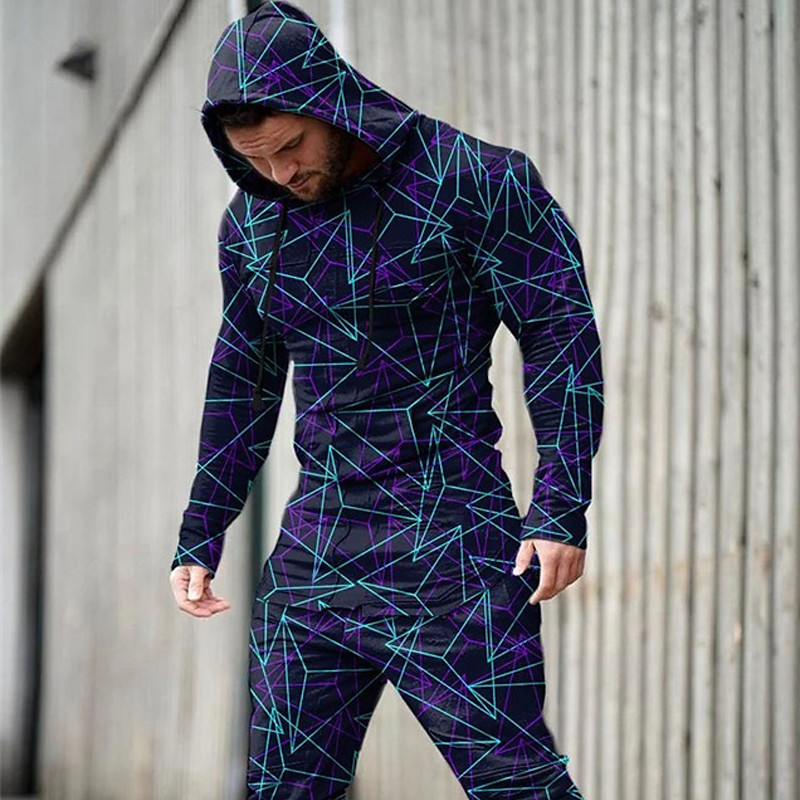 Men's Graphic Geometric 2pcs 3D Sweatshirt Sets Tracksuit Hoodies Long Sleeve Long pants Hooded Streetwear Sportswear Basic Sports Outdoor Casual Sports Print Spring Fall Yellow Light Green Pink