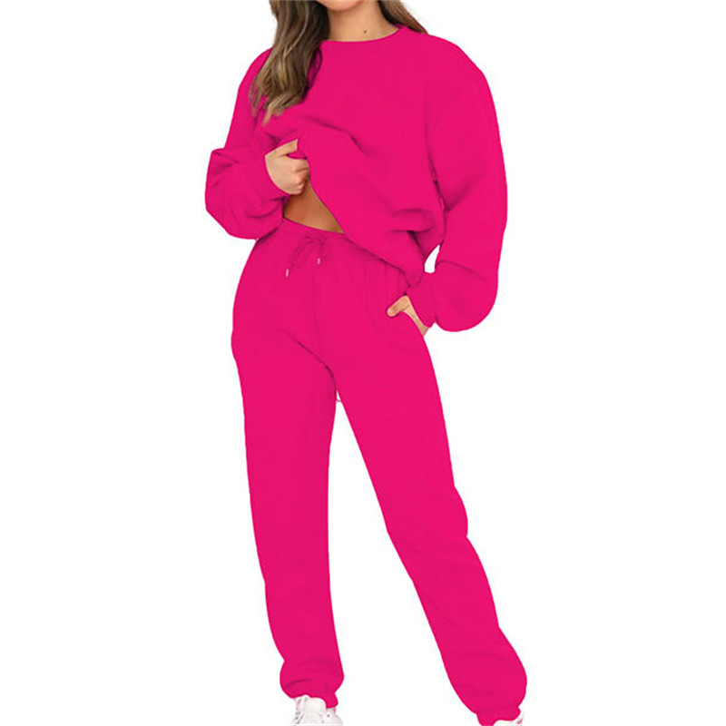 Women's Pullover Sweatsuit Sets 2 Piece Tracksuit Lounge Outfits with Pocket Solid Colored Clothing Suit Fall Black Pink Gym Running Fitness Breathable Long Sleeve Sport Activewear Micro-elastic