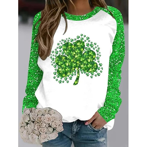 St. Patrick Damen Pullover Sweatshirt Shamrock Fashion Langarm Rundhals reguläre Tops Casual Druck Grün Sommer Frühling