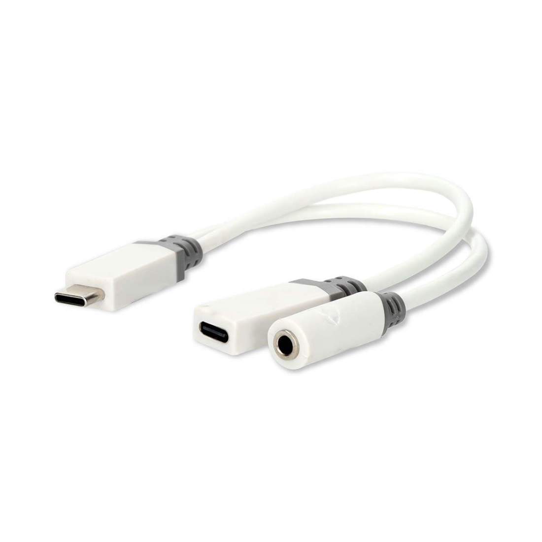 USB-C™ Sovitin | USB 2.0 | USB-C™ Uros | USB-C™ Naaras / 3.5 mm naaras | 0.10 m | Pyöreä | Kullattu | PVC | Valkoinen | Laatikko