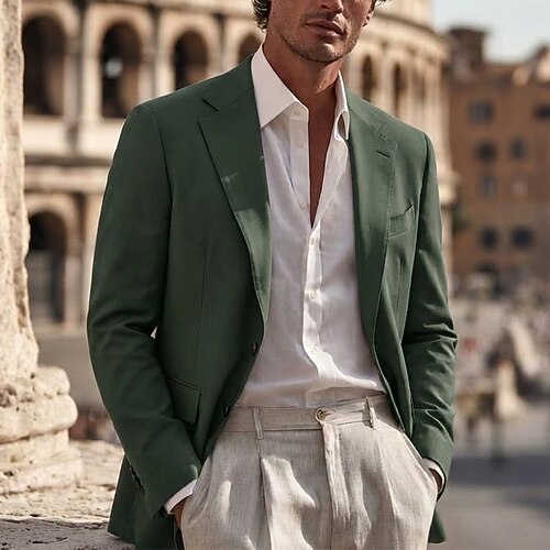 Per uomo Giacca blazer Blazer di Lino Colletto ad incastro Moda Casual Tinta unita Blu Cáqui Escuro Nero Vestibilità su misura Monopetto Due Bottoni
