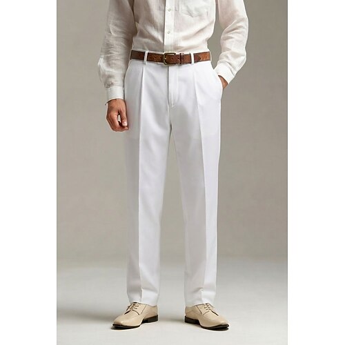 Uomo Cotone Lino Pantaloni Eleganti Pantaloni casual Quotidiano Ufficio Neutro Moda Casual Nero Bianco Blu marino scuro Tinta unica Vestibilità su misura Lungo Inelastico