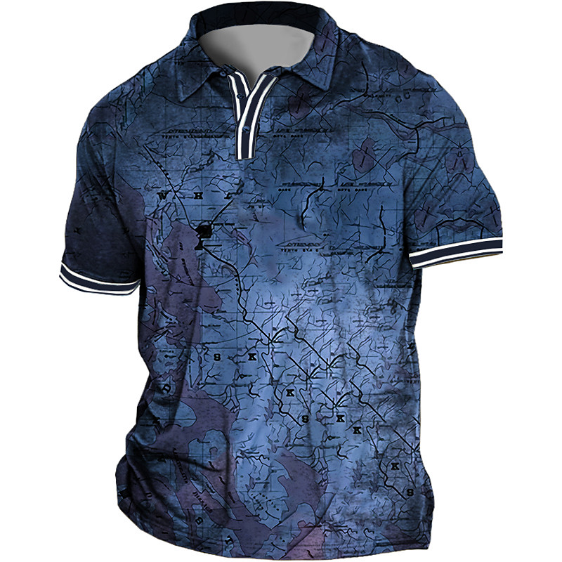 Men's Plus Size Polo Shirt Big and Tall Map Turndown Print Short Sleeve Spring Summer Sports Fashion Streetwear Designer Outdoor Street Tops