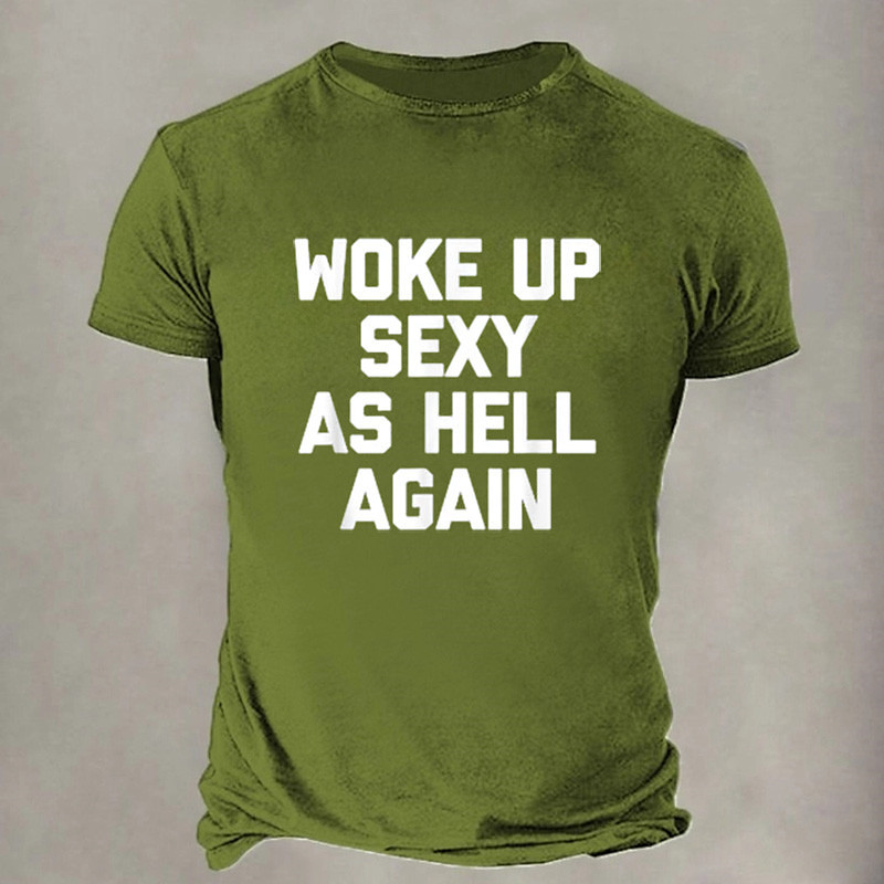 Men's Short Sleeve Graphic T-Shirt Funny 'Woke Up Sexy As Hell Again' Confident Lifestyle Tee