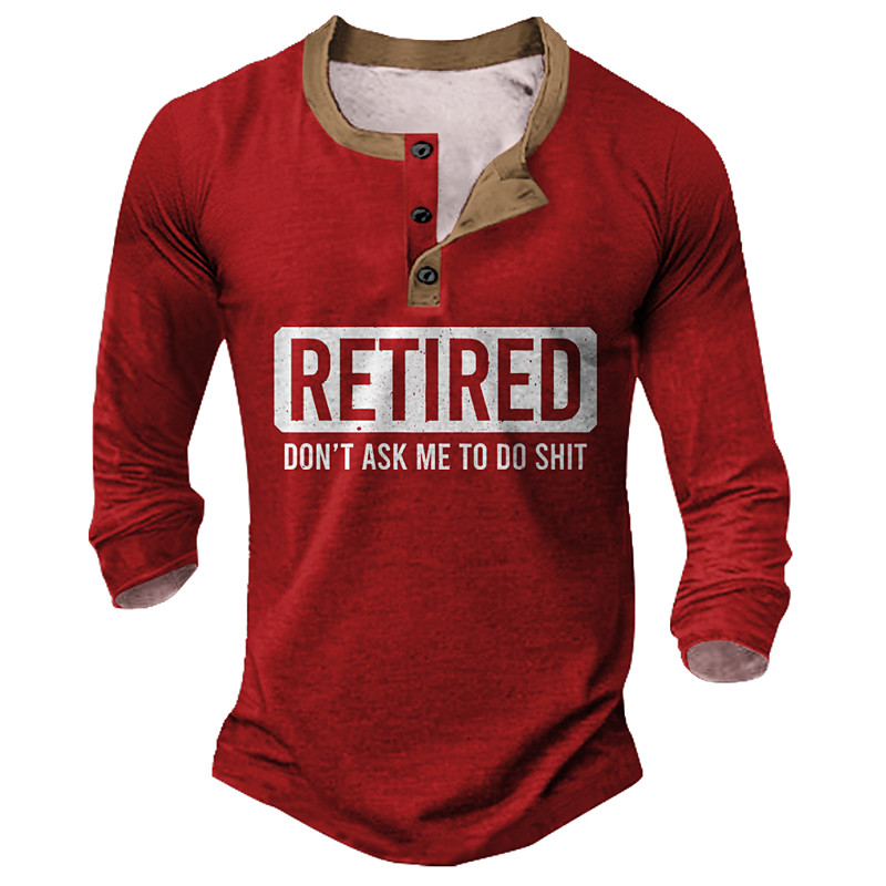 Men's Funny Retired Long Sleeve Henley Shirt Don't Ask Me To Do Shit Graphic Work Humor Tee