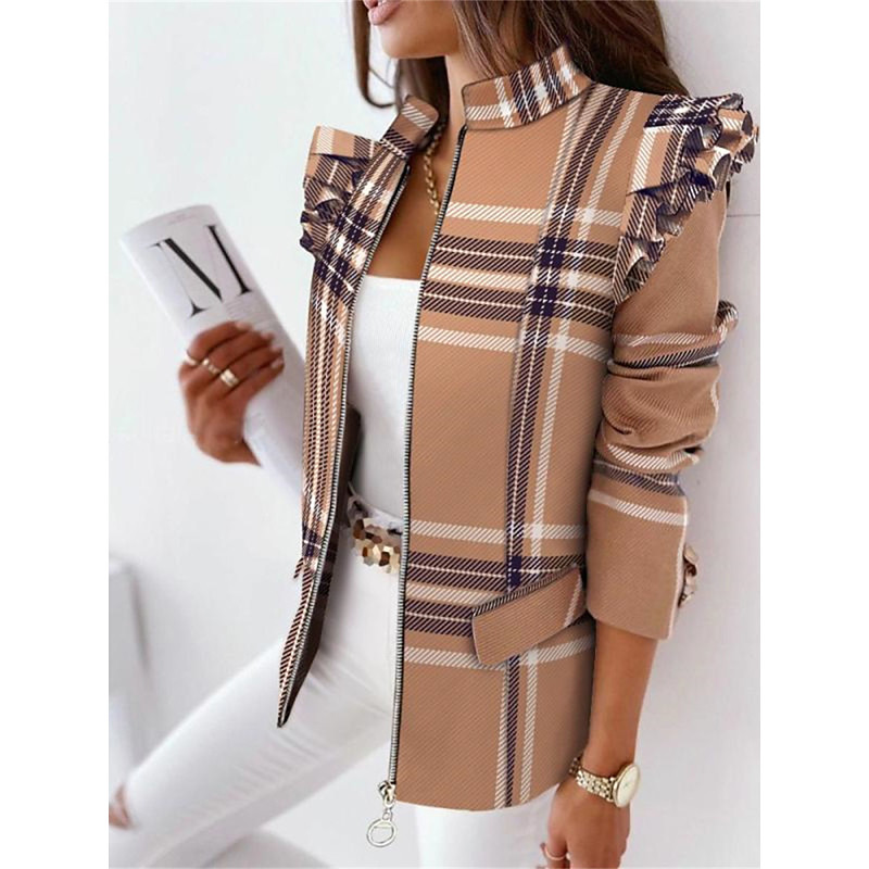 Women's Blazer Outdoor Zipper Leopard Warm Fashion Regular Fit Outerwear Long Sleeve Fall Leopard S