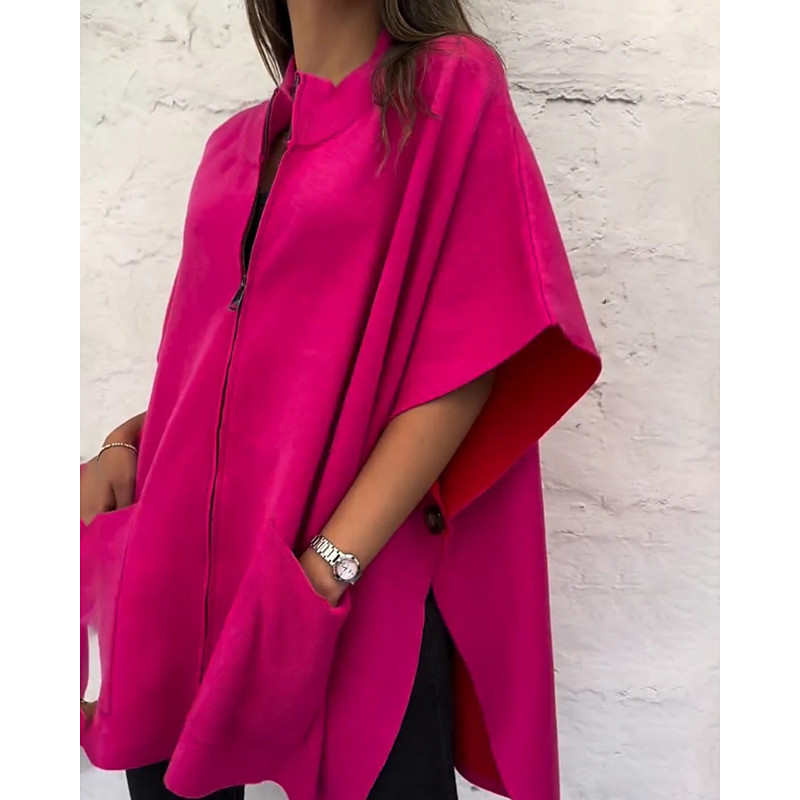 Women's Casual Jacket Comfortable Pocket Casual Plain Going out Casual Daily Zipper Regular Stand Collar Regular Fit Half Sleeve Outerwear Orange Green Rose Red Fall Winter