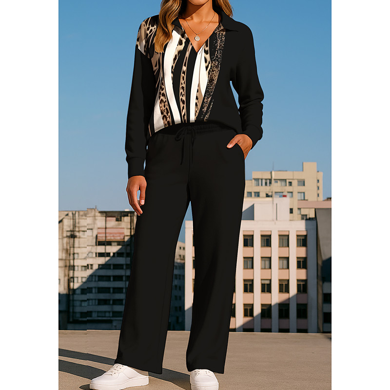Women's Sweatshirt Tracksuit Sweatpants Drawstring Zipper Leopard Jacket and Sweatpants Athletic Clothing Set Loungewear Summer Black White Gym Workout Casual Workout Thermal Warm Soft Baggy Long