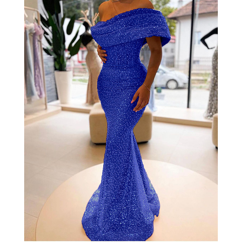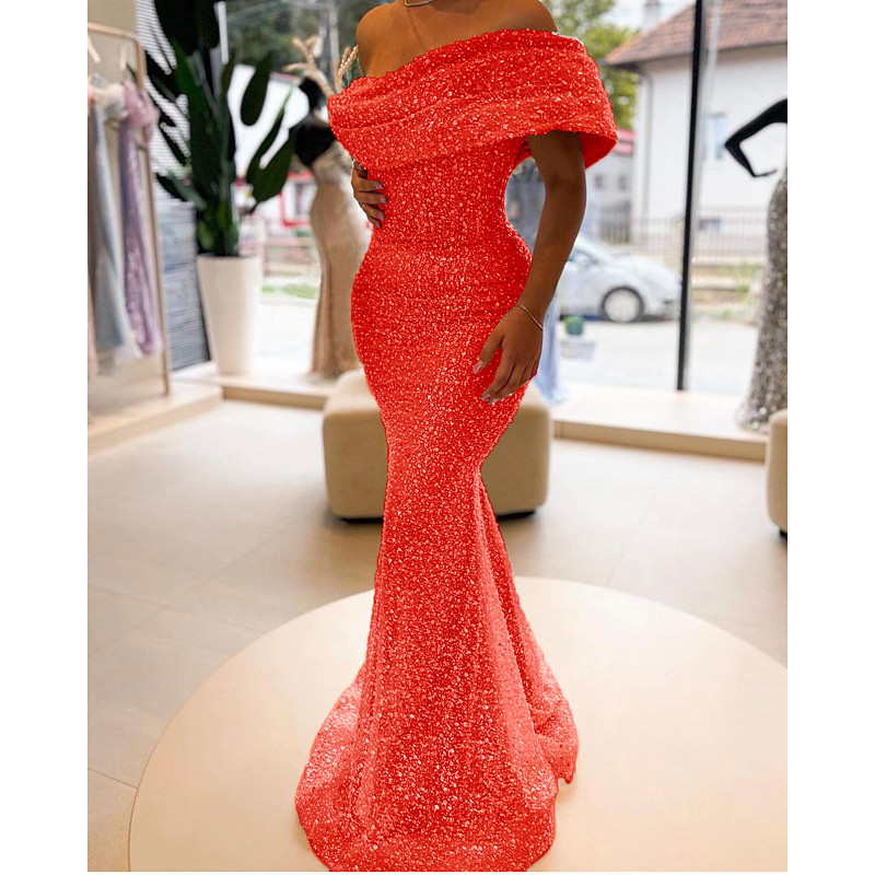 Mermaid Trumpet Sweep Brush Train Prom Dresses Evening Gown Ball Gown Formal Dress Elegant Glittering Celebrity Style Sleeveless Off Shoulder Garden Party Wedding Stretch Satin Sequined with Ruched